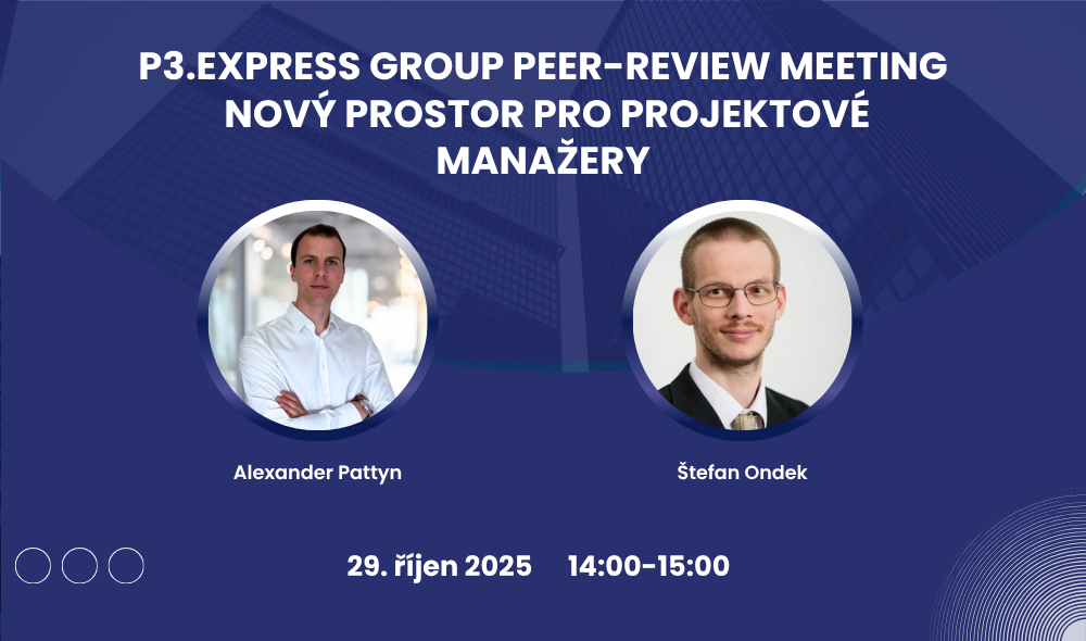 Zveme vás na úvodní webinář, který představí nový komunitní formát P3.express Group Peer-Review Meeting – praktický způsob, jak si projektoví manažeři mohou navzájem sdílet reálné projekty, získávat zpětnou vazbu a společně růst v bezpečném a podporujícím prostředí.